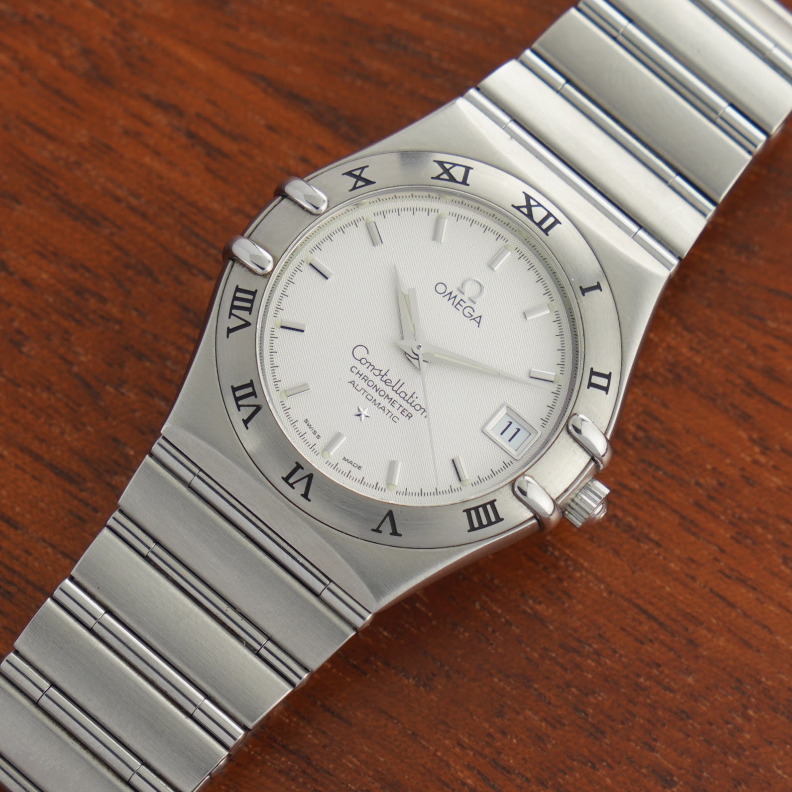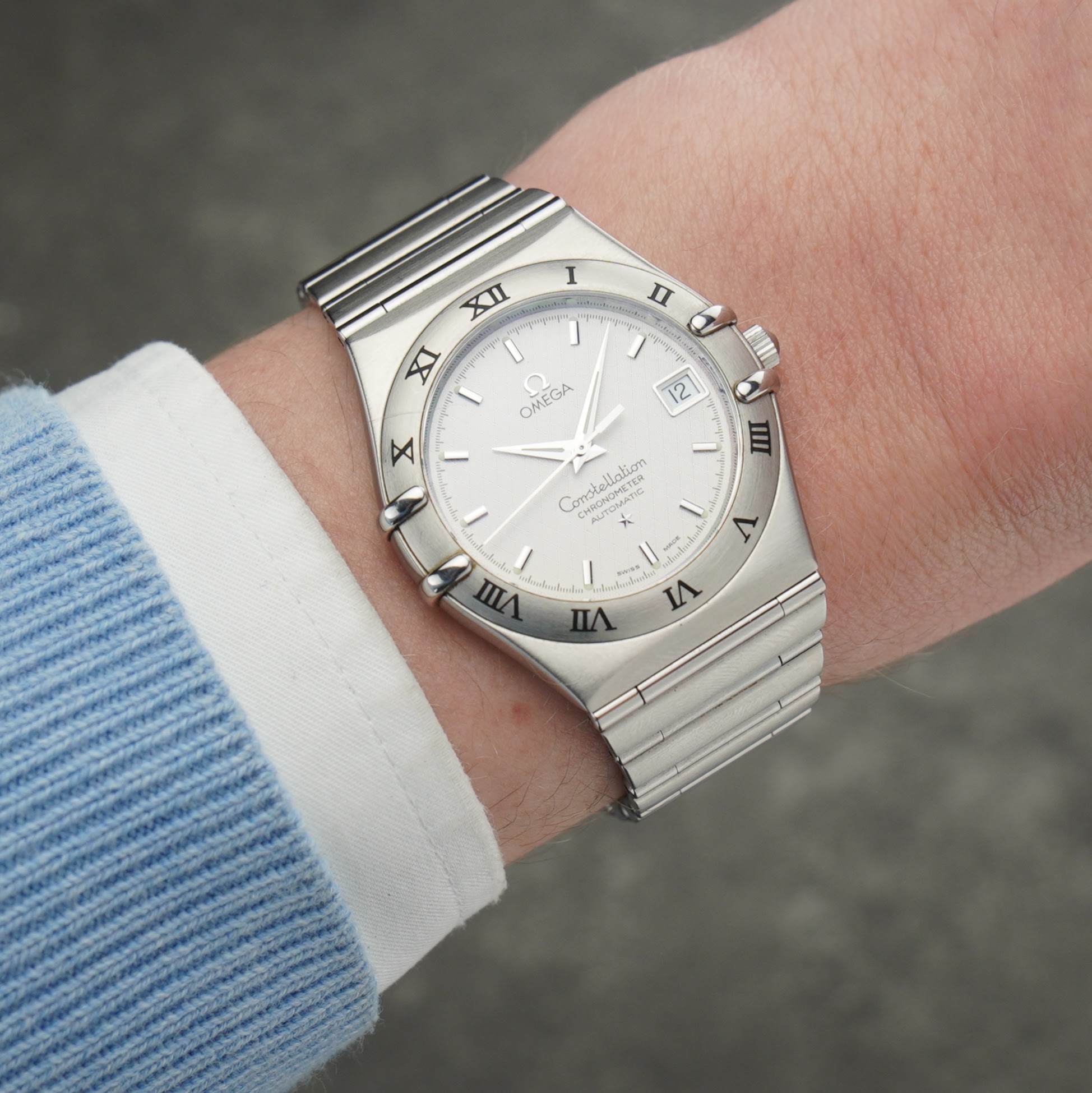 The Omega Constellation line, introduced in 1952, became the brand’s flagship collection, known for its precision and chronometer-certified movements inspired by observatory achievements. In 1982, the iconic “Manhattan” design was introduced, featuring the signature claws and integrated bracelet that define the look of this watch. This 2000s example perfectly reflects that evolution, combining Omega’s heritage of accuracy with the bold, elegant neo-vintage design seen here. A truly beautiful timepiece, ready for the wrist of a dedicated neo-vintage enthusiast.