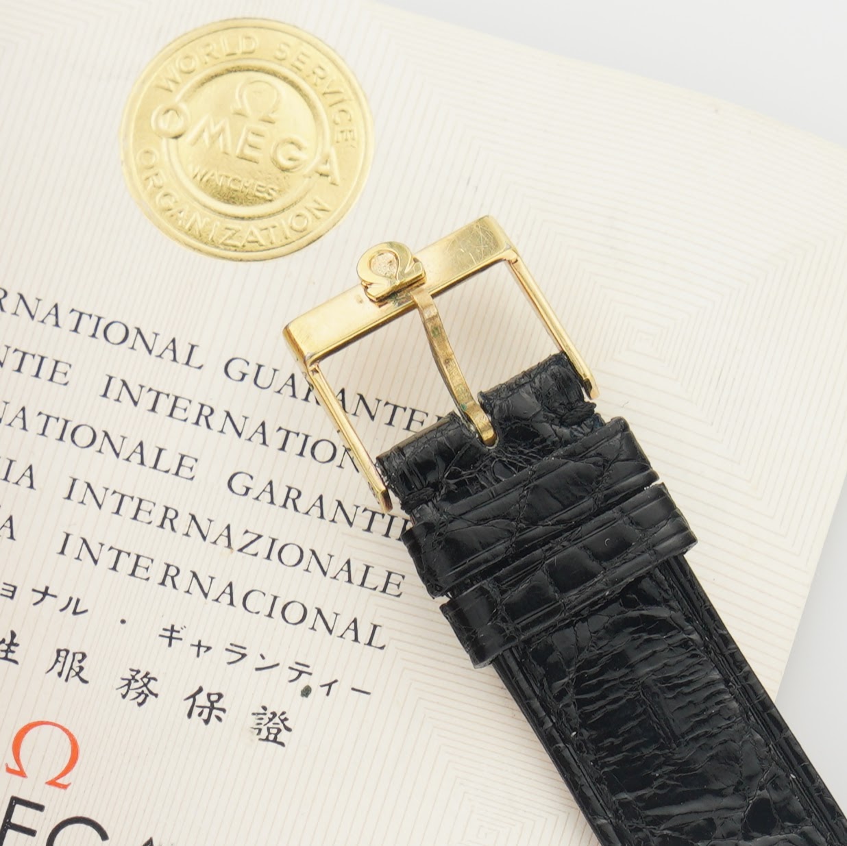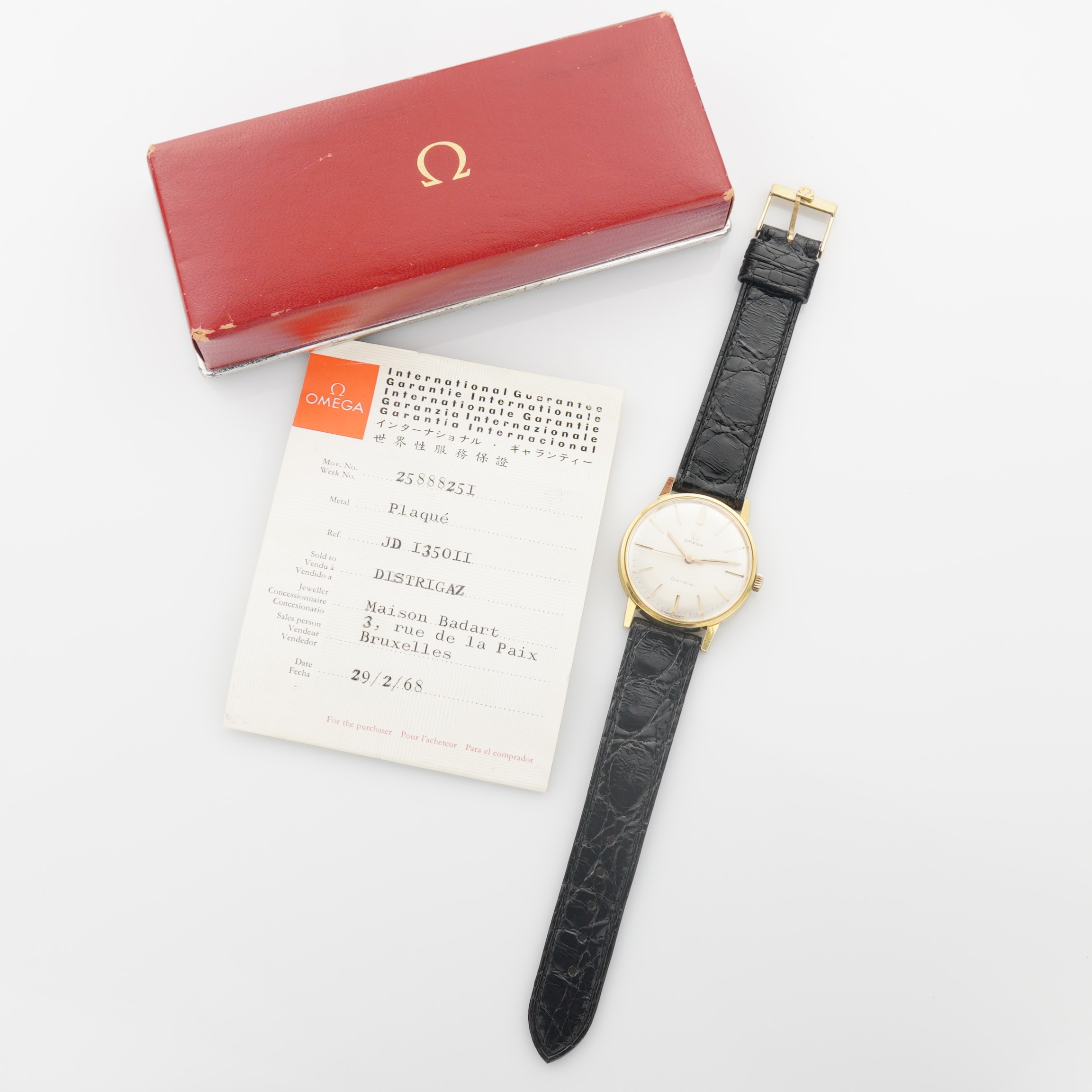 This gold-plated example is in overall very good condition, comes with his original box & papers, strap with gold-plated buckle and is ready for the wrist of a true Omega connoisseur.